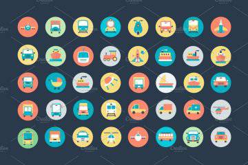 交通矢量图标下载 100 Flat Transport Icons