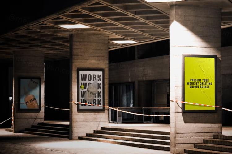 图穷联素材库 » 户外街头广告牌宣传海报广告设计贴图展示样机模板 Wall P