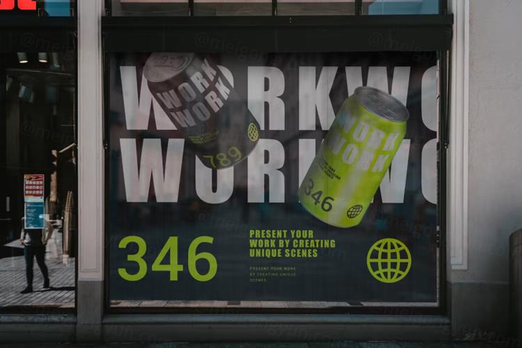图穷联素材库 » 户外街头橱窗广告海报设计贴图展示样机PSD模板 Window