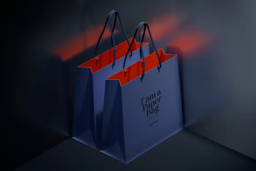 图穷联素材库 » 高质量手提袋纸袋品牌包装设计贴图展示样机PSD模板 Pape
