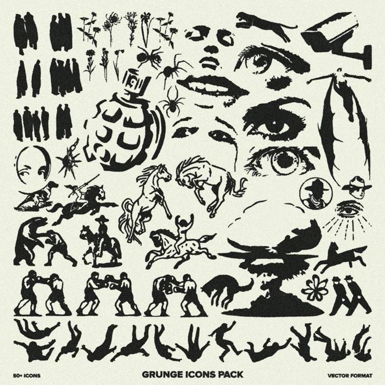 以矢量格式收集令人惊叹的图标,反映真正的垃圾摇滚氛围。如果您想创建独特的 T 恤设计或任何同时看起来美观和垃圾的东西,这是最佳选择。