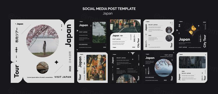 图穷联素材库 » 异形版式设计日本城市旅游Ins新媒体宣传横幅海报PSD模板
