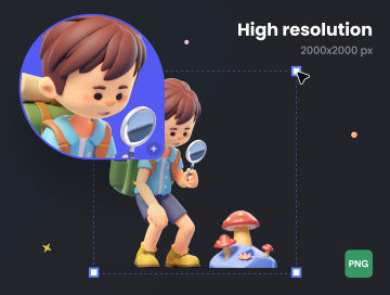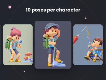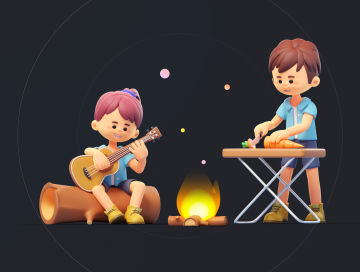 图穷联素材库 » 户外徒步旅行露营烧烤探索卡通人物3D插画素材 Milo Th