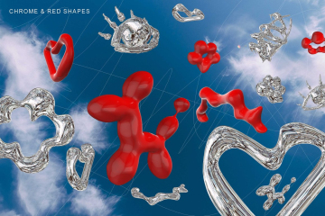 图穷联素材库 » 潮流3D虚拟服饰透明金属镀铬铝箔红色气球字母符号形状PNG免