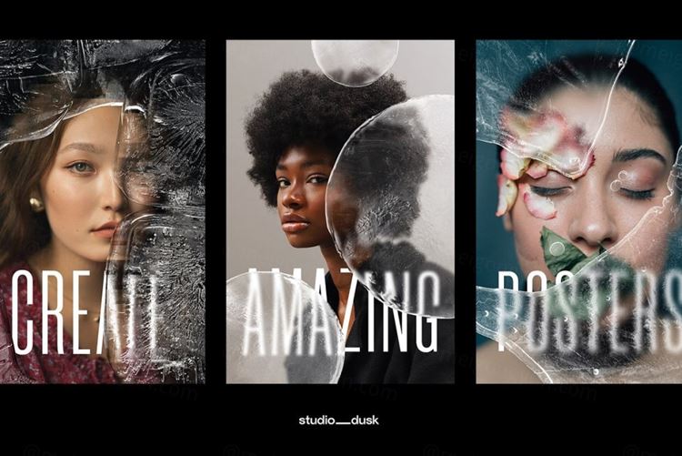 图穷联素材库 » 高质量潮流海报设计冰块失真模糊效果PSD模板素材 The F