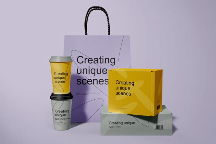 图穷联素材库 » 手提袋纸杯鞋盒服装品牌包装设计贴图展示样机PSD模板 Br