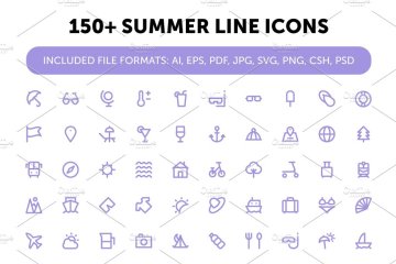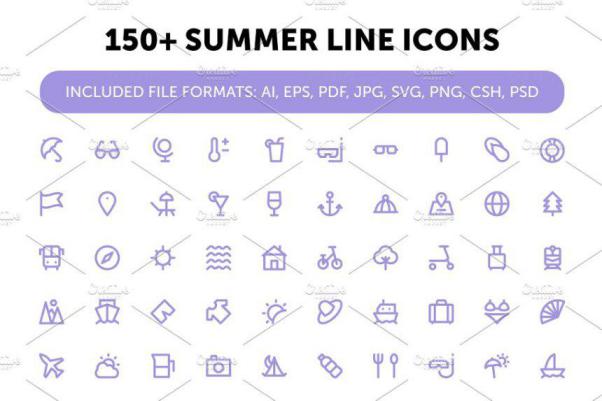 图穷联素材库 » 夏季矢量图标素材 150 Summer Line Icons