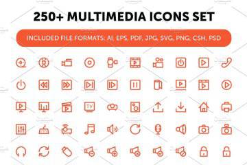 多媒体矢量图标素材 250 Multimedia Icons Set