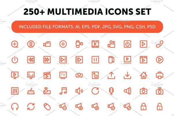 图穷联素材库 » 多媒体矢量图标素材 250 Multimedia Icons Set