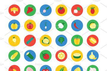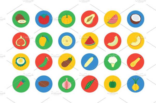 图穷联素材库 » 水果和蔬菜矢量图标下载 Fruit and Vegetable Vector I