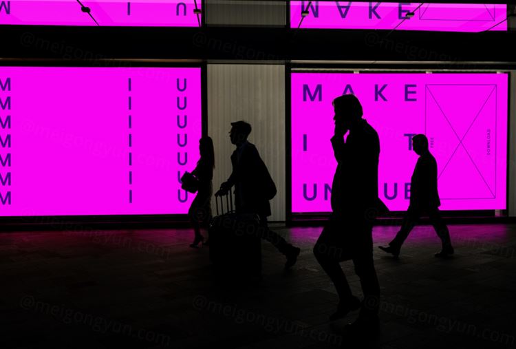 地铁站走廊广告牌灯箱宣传印刷广告贴图展示样机PSD模板 St