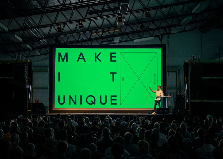 图穷联素材库 » 产品发布会舞台讲台PPT演示设计贴图展示样机PSD模板