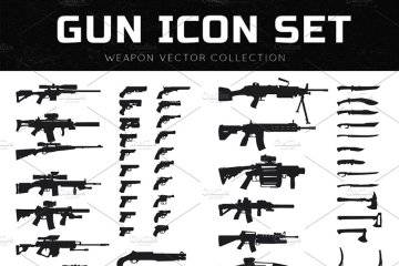 武器矢量图形图标素材 Weapon Vector Set and Dark Lo