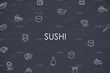 图穷联素材库 » 美食寿司矢量图标下载 Sushi thinline icons