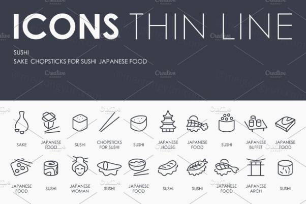 美食寿司矢量图标下载 Sushi thinline icons