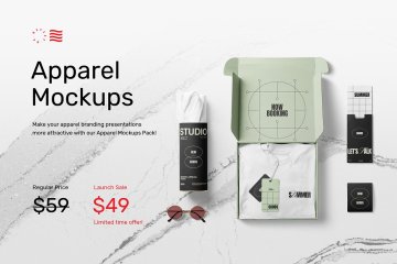 图穷联素材库 » 高质量服装品牌包装设计VI展示样机模板全套 Apparel