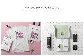 使用我们的 Apparel Mockups - Scene Creator 让您的服装品牌展示更具吸引力!所有物体和阴影都完全分离,因此您可以轻松玩转它们并创建自己的场景。旋转项目,更改颜色并添加您的设计。调整光影不透明度以获得不同的对比度。只需用智能对象层替换设计,点击保存,就大功告成了。你会喜欢的!