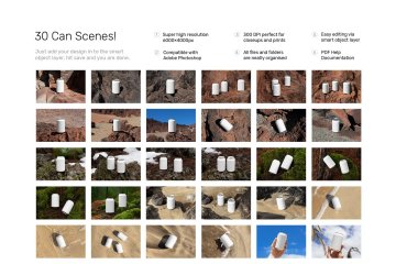 使用我们的 Can Mockups - Nature Scenes,让您的罐头项目演示更加逼真和吸引人!超高分辨率6000×4000px。300 DPI 非常适合特写和打印。通过智能对象层轻松编辑。所有文件和文件夹都井井有条。只需将您的设计添加到智能对象层,点击保存,即可完成。您可以轻松地将金属元素的颜色更改为银色、黑色和金色,或者选择您自己的颜色。玩转光影不透明度。你一定会爱上它!