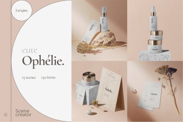 Cute Ophelie 是一位现代简约场景创作者。这将帮助您快速创建漂亮的演示文稿、社交媒体帖子、可固定的博客标题、产品图片等等。