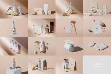 图穷联素材库 » 高端奢侈美妆护肤化妆品品牌包装设计贴图场景样机模板 Cute