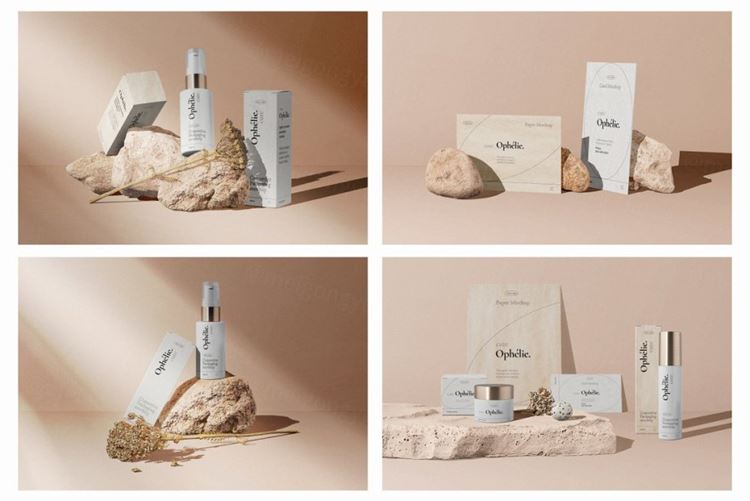 高端奢侈美妆护肤化妆品品牌包装设计贴图场景样机模板 Cute
