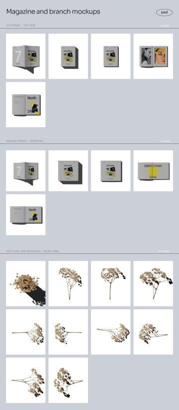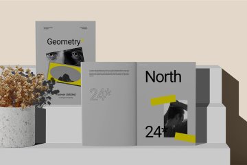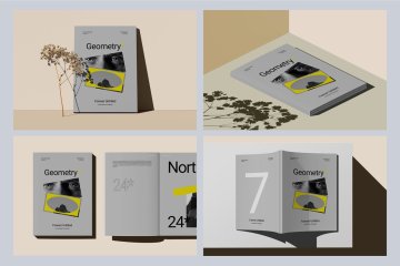 图穷联素材库 » 高质量杂志书籍画册排版设计贴图场景展示样机模板 Geomet