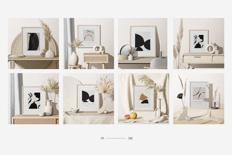 图穷联素材库 » 北欧极简风艺术画框相框装饰画设计贴图展示样机模板 Frame
