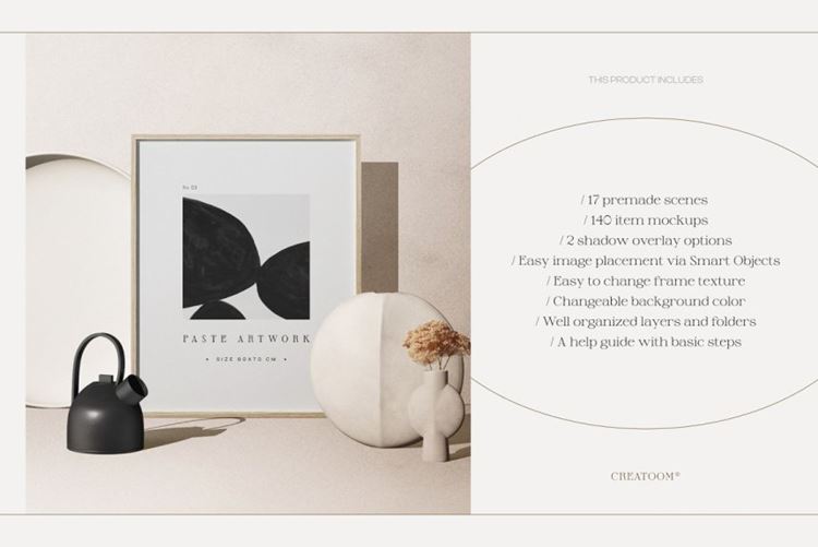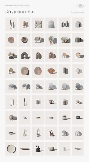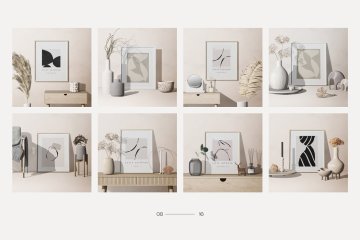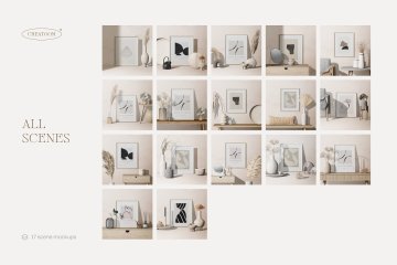 介绍具有自然光照和阴影的现代逼真框架样机创建者 - 第 2 部分。太阳阴影使场景看起来逼真而现代。使用 140 个独立的项目,您可以创建独特而逼真的场景。17个准备好的场景将帮助您更快上手。