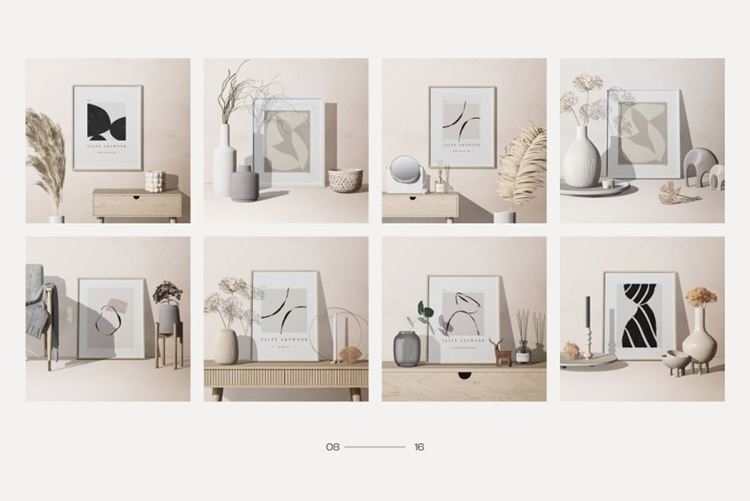 图穷联素材库 » 北欧极简风艺术画框相框装饰画设计贴图展示样机模板 Frame