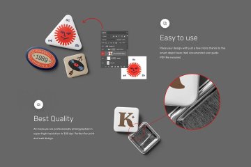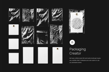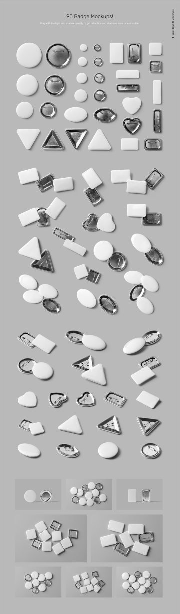 使用我们的 Badge Mockups - Packaging Creator 让您的徽章设计展示更具吸引力!所有物体和阴影都完全分离,因此您可以轻松玩转它们并创建自己的场景。我们制作了一些箔纸和卡片模型,让您有一个更好的开始。编写您自己的场景或使用我们的预制场景。旋转项目,更改颜色并添加您的设计。调整光影不透明度,使反射和阴影或多或少可见。只需用智能对象层替换设计,点击保存,就大功告成了。你一定会爱上它!