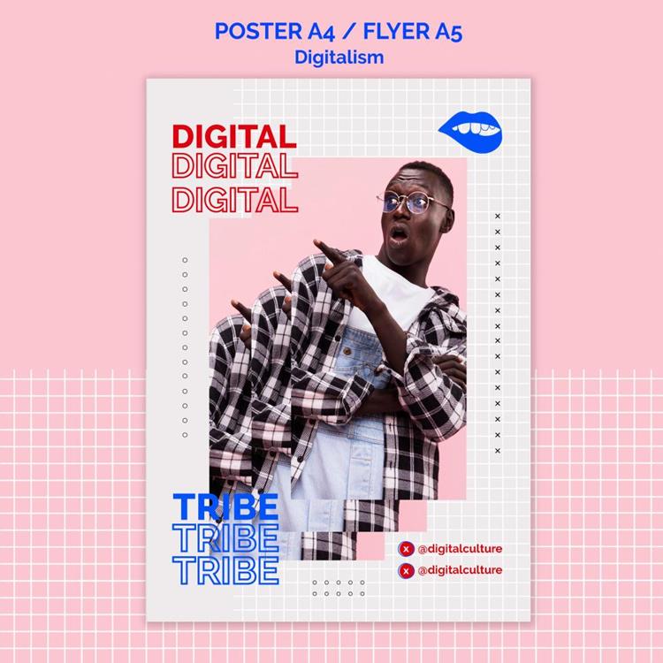 欧美未来派动态数字美学版式宣传海报PSD设计模板素材