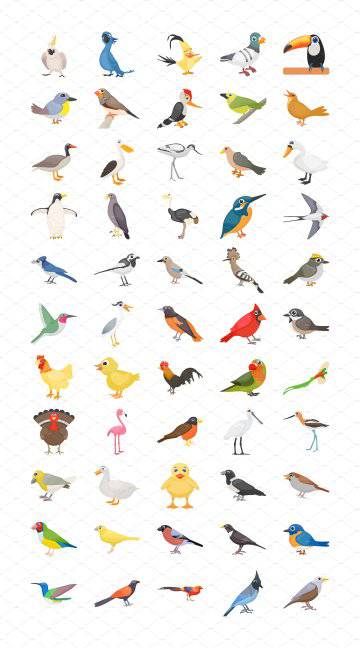 图穷联素材库 » 卡通鸟类矢量图标大全 55 Cartoon Birds Vector Icons