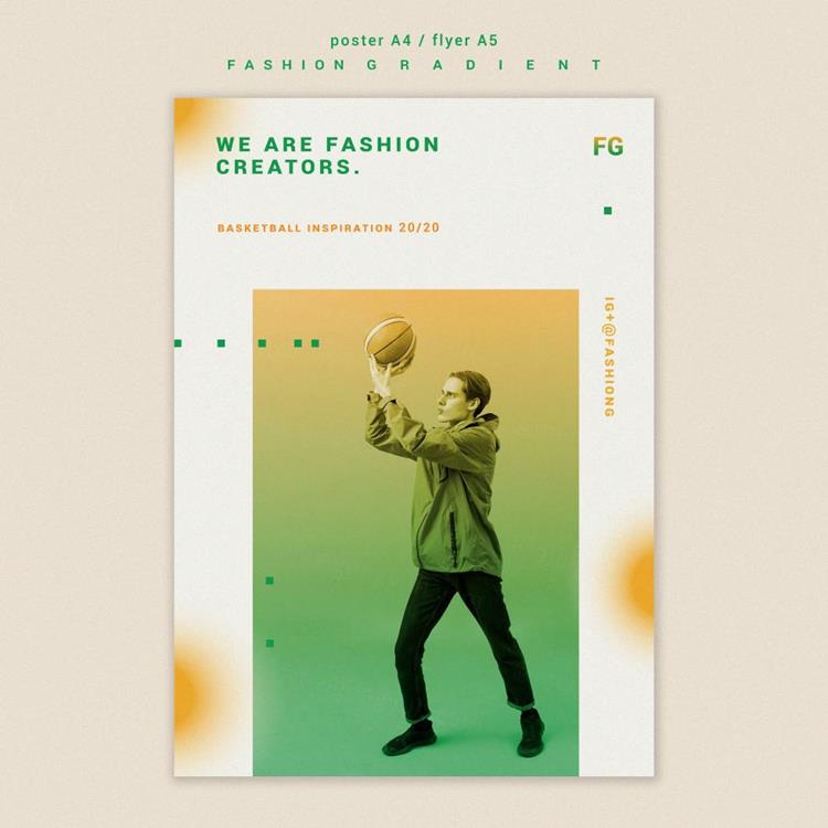 极简风时尚黄绿色渐变个性排版宣传海报PSD模板素材 Fash