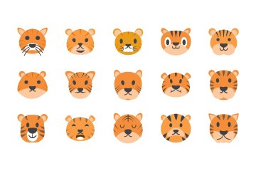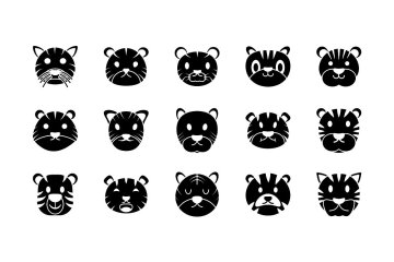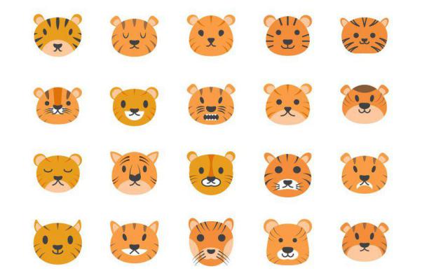 图穷联素材库 » 可爱的老虎矢量图标下载 35 Cute Tiger Faces Vector I
