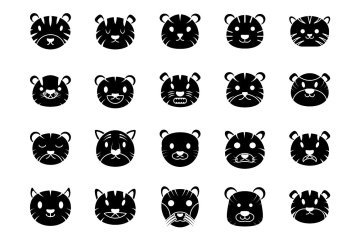 可爱的老虎矢量图标下载 35 Cute Tiger Faces Vector I