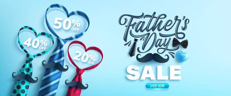 蓝色父亲节快乐领带眼镜礼盒胡子蝴蝶结元素EPS矢量促销海报模