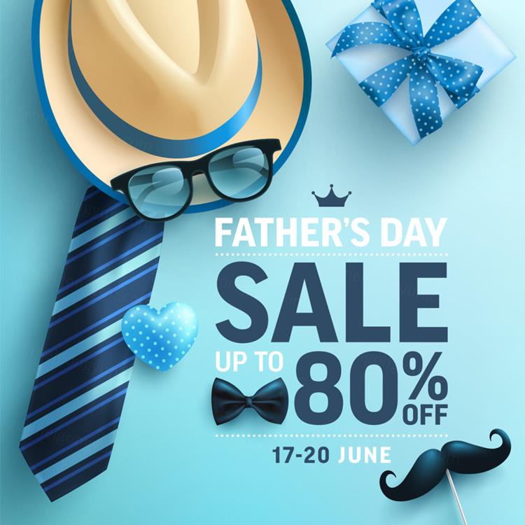 图穷联素材库 » 蓝色父亲节快乐领带眼镜礼盒胡子蝴蝶结元素EPS矢量促销海报模