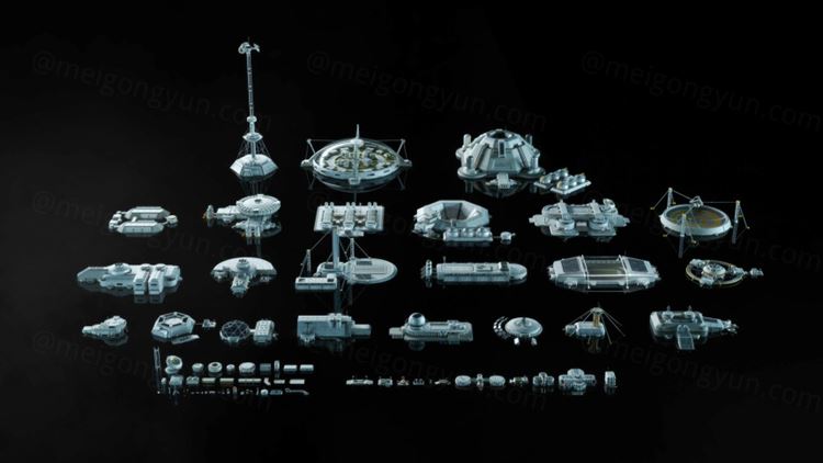 图穷联素材库 » 大型星球殖民主题月球基地空间站太空堡垒实验室3D模型 Kit