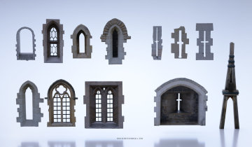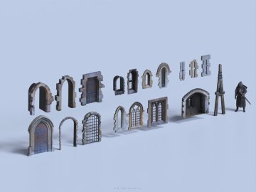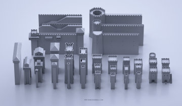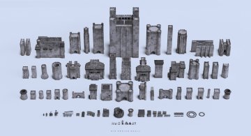 这个包包括 100 多个元素:定制城堡、模块化塔、高度逼真的门窗。所有模型都是低聚的。建筑物现在有 UV,高度详细的复杂自定义材料设置(Blender,UE)。还提供了具有简单烘焙 PBR 材料的建筑物。格式:混合、OBJ、FBX、UE。