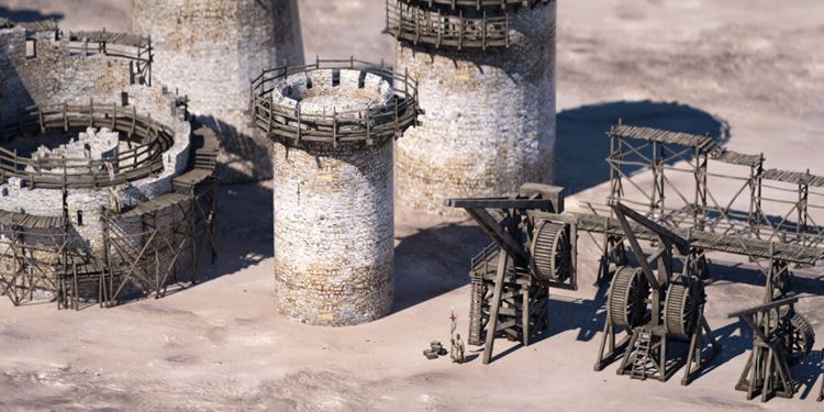 图穷联素材库 » 「权利的游戏」中世纪冷兵器时代3A游戏级城堡塔楼墙壁门窗房屋