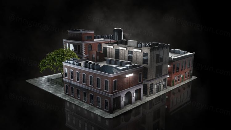 图穷联素材库 » 欧洲布鲁克林街区红砖结构公寓大楼都市住宅建筑3D模型素材 K
