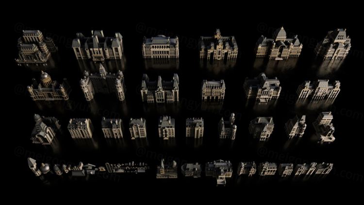 图穷联素材库 » 欧洲新艺术派古典主义风格居民住宅政府街区建筑3D模型素材 K