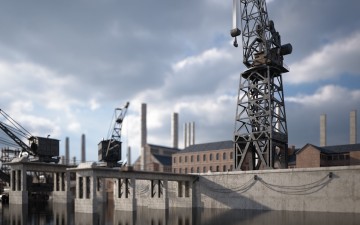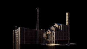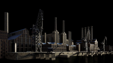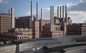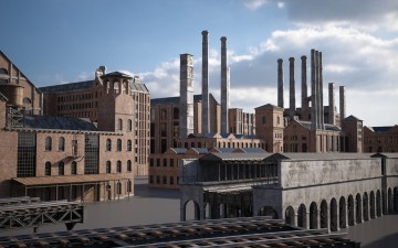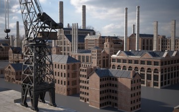 欧洲19世纪工业革命都市滚滚浓烟工厂建筑主题场景3D模型素材