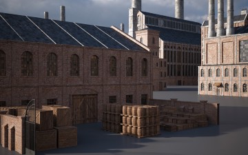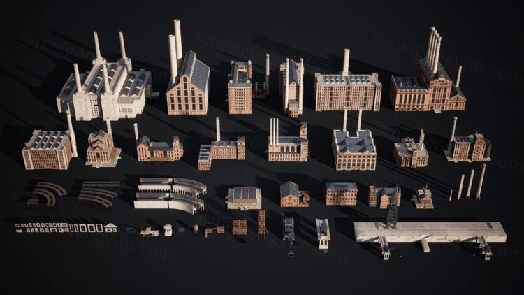 图穷联素材库 » 欧洲19世纪工业革命都市滚滚浓烟工厂建筑主题场景3D模型素材