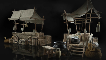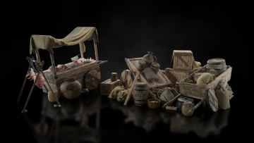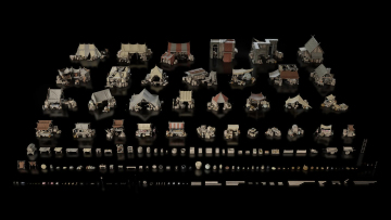 用这个套件的帐篷、桶、马车、拱门、武器、器皿、桌子、水壶、板条箱、篮子、梯子、画布、布、面包、死鱼等等,让您的所有幻想和中世纪世界栩栩如生!较大的部分还具有详细的内部装饰,可以让您的商人营地、女巫飞地、骑士宿舍、贸易营地、地精巢穴以及您的其他奇幻世界更加大胆!