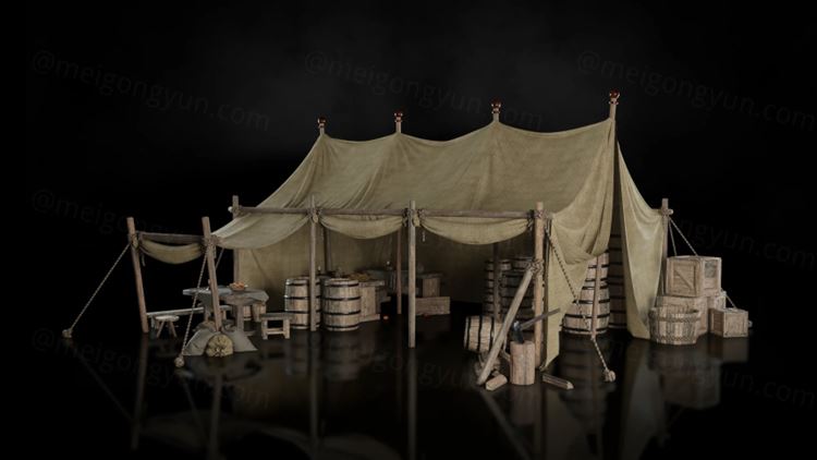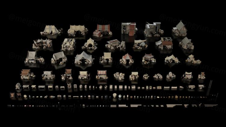 图穷联素材库 » 中世纪中东市场街道场景商人营地骑士宿舍3D模型设计素材 Ki