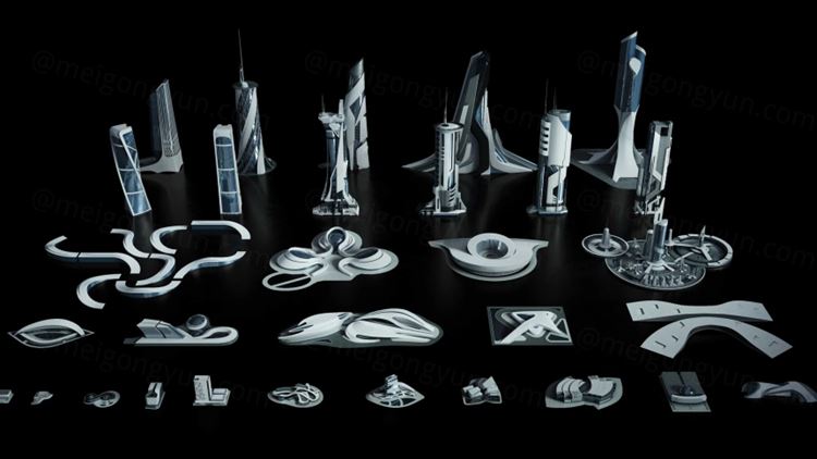 图穷联素材库 » 新未来主义乌托邦博物馆体育馆科幻电影城市建筑设计3D模型素材