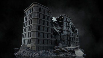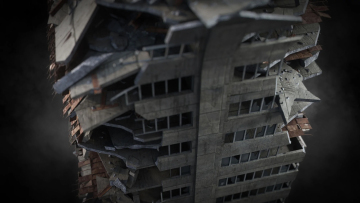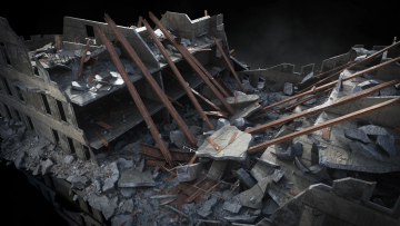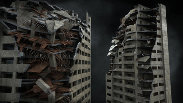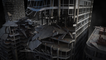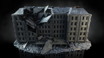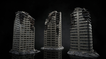 末日战争废墟残垣断壁战区破烂楼房街道城市建筑3D模型设计素材
