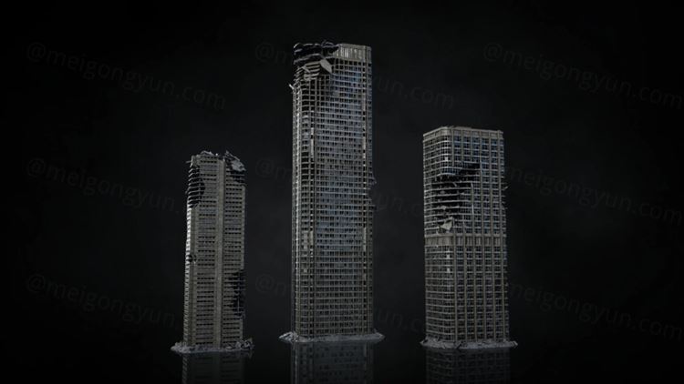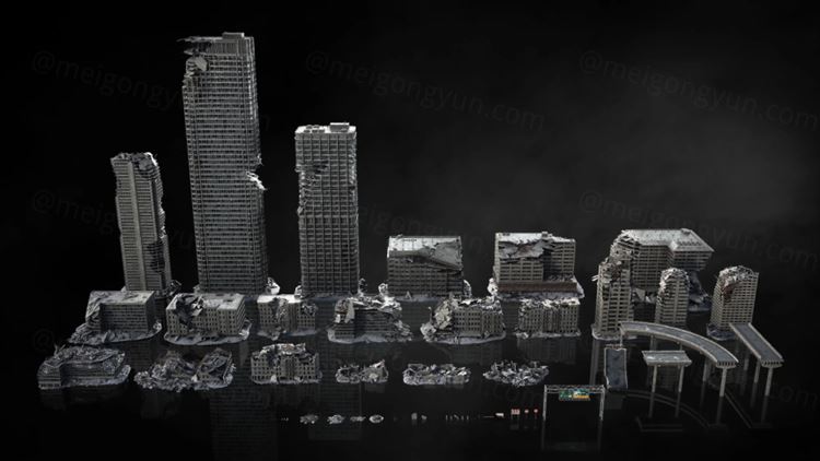 图穷联素材库 » 末日战争废墟残垣断壁战区破烂楼房街道城市建筑3D模型设计素材