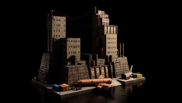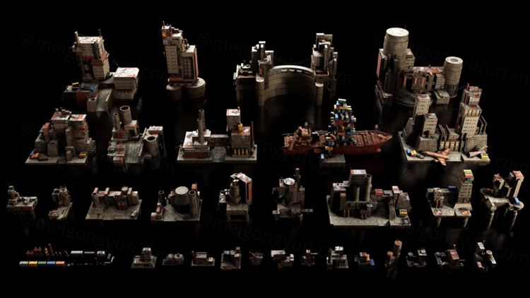 图穷联素材库 » 未来世界末日战后废墟荒芜遗弃工厂史诗级游戏场景3D模型素材